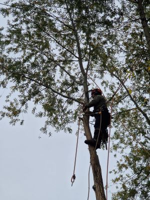 Safe and controlled felling of a dangerous False Acacia in Epsom by Arborlife Tree Services. Certified, tidy, and local tree surgeons in Surrey.