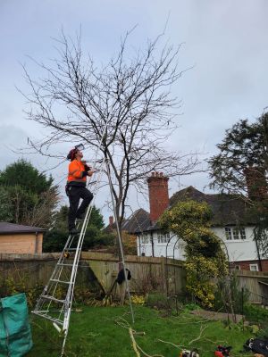 Safe and controlled felling of a dangerous False Acacia in Epsom by Arborlife Tree Services. Certified, tidy, and local tree surgeons in Surrey.